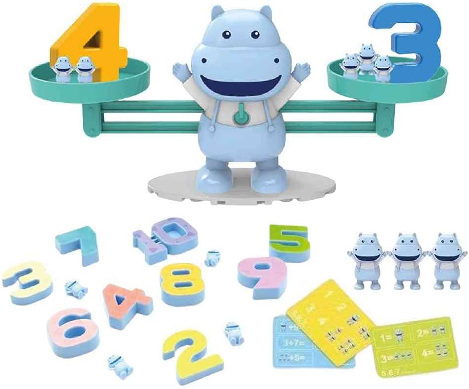 Each number has weight to balance it with the same number of hippos. The number of hippos will match with weight of the corresponding number.