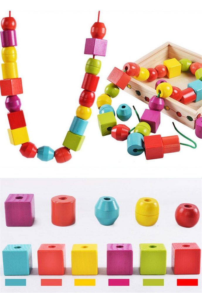 - Product Name: Wooden Shape Building Blocks with Rope Connection / Lacing Beads Set