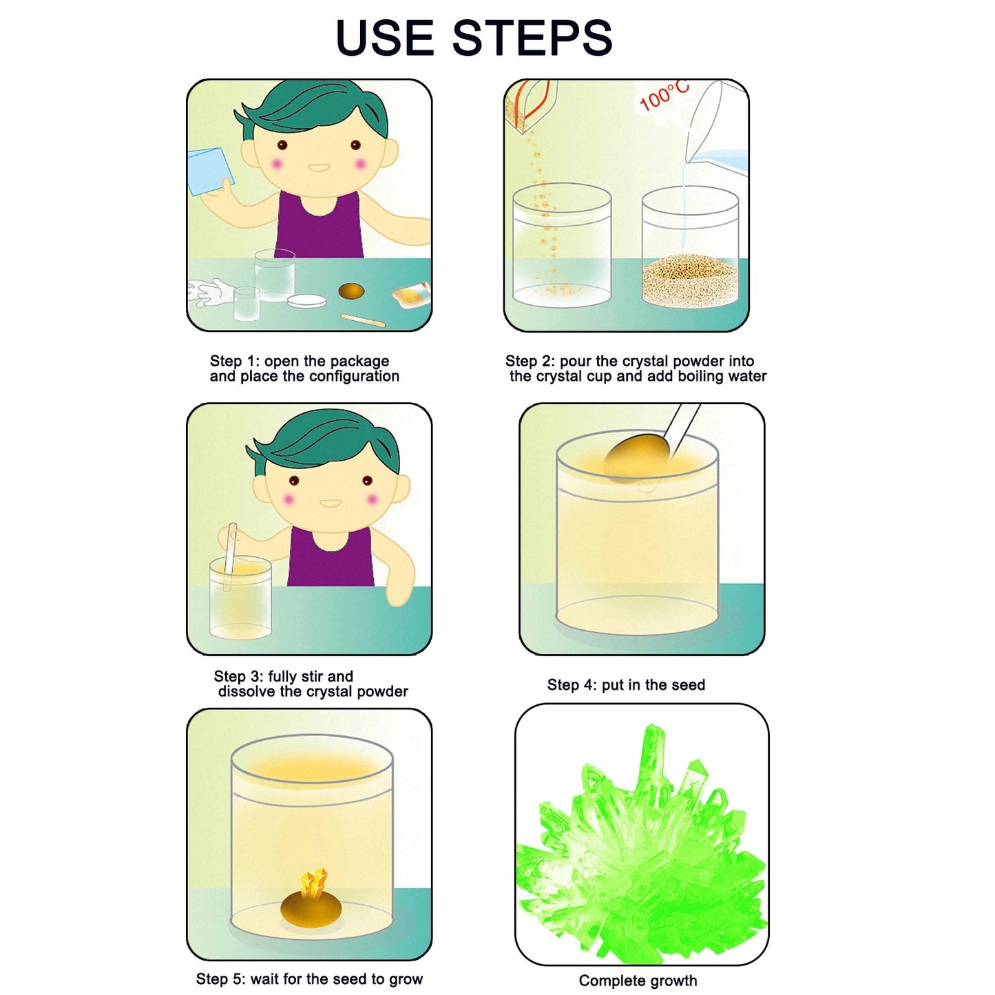 It’s Crystal Clear, Kids Will Love This Project Science has never been this much fun before! Get ready for an easy educational science experiment that will blow your mind! All you’ll need to do is add our special powder to hot water, mix it well, and then add your crystal seed. It’s as easy as 1-2-3. Our step by step instructions will make it easy for kids to follow along and they`ll even learn how natural crystals grow and are formed. With a Little Help, They’ll Go a Long Way Unisex Kids will need a little help boiling the water for this experiment. Adult Supervision is recommended. Otherwise, they can mostly do it on their own. Build their confidence by letting them discover their scientific abilities and independence. Kids will learn precision and patience because the crystal needs 7 days to fully grow! They’ll wake up every morning eager to check the progress of their crystal.